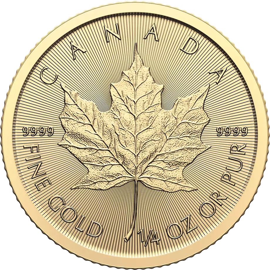 Atraskite patikimą investiciją – 1/4 oz (~7,776 g) „Canadian Maple Leaf“ aukso monetą. Puikus pasirinkimas investuotojams, norintiems mažesnės sumos aukso investicijos.